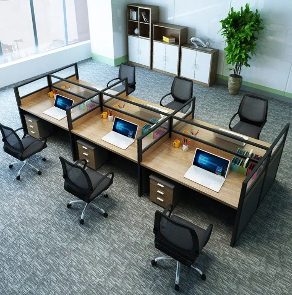 The 6-Way Workstation combines contemporary aesthetics with functional design. Its clean lines, neutral colors, and ergonomic layout make it suitable for corporate offices, co-working spaces, and professional work environments.