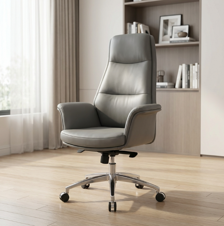 The tall backrest is shaped to support the full length of your spine, from lower back to shoulders and neck. This design encourages better sitting posture and reduces fatigue caused by extended desk work. The built-in lumbar support helps minimize back pain, making it ideal for managers, directors, and remote professionals who work for many hours.